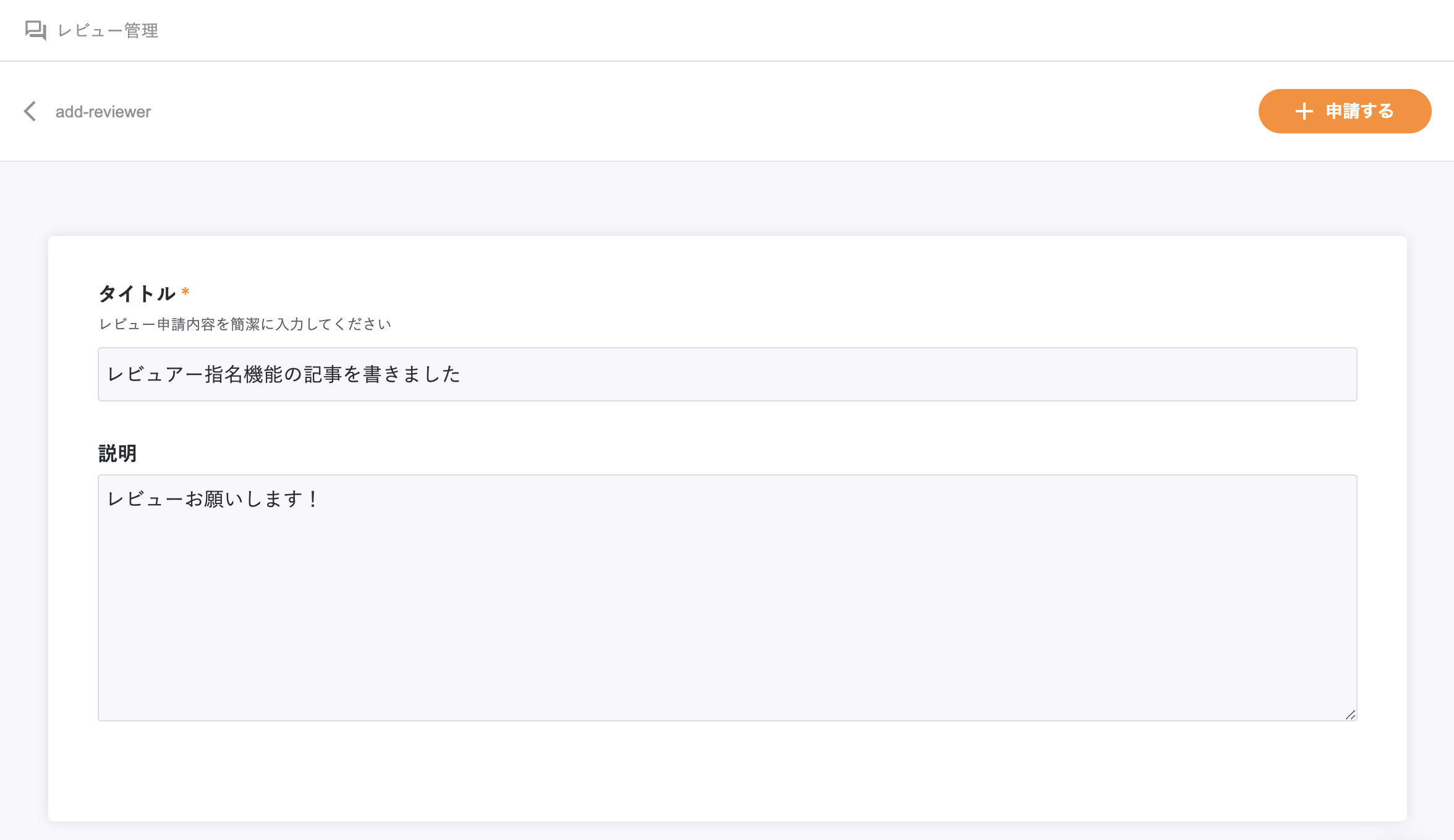今回はこちらのレビュー申請機能に新たにレビュアー指名機能がつきましたので紹介いたします。