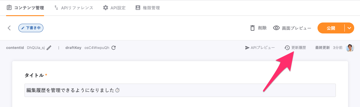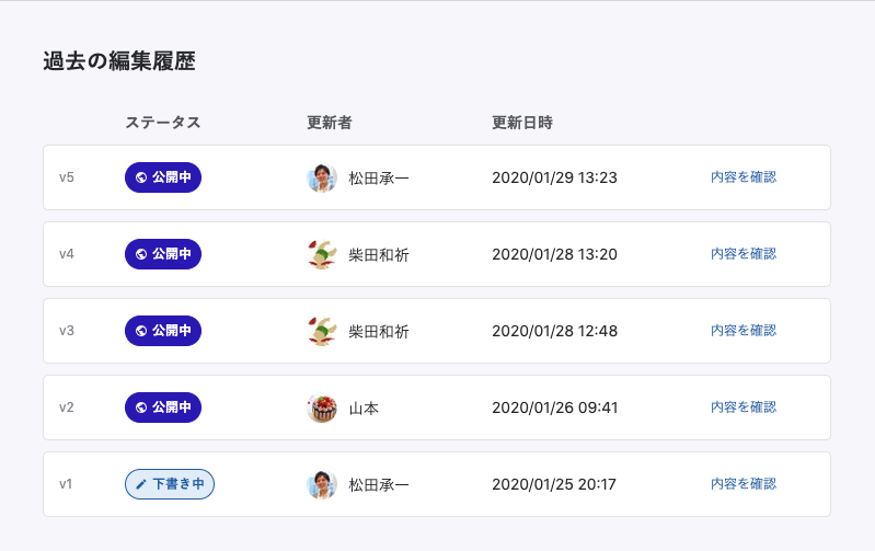 コンテンツの編集履歴を管理できるようになりました!