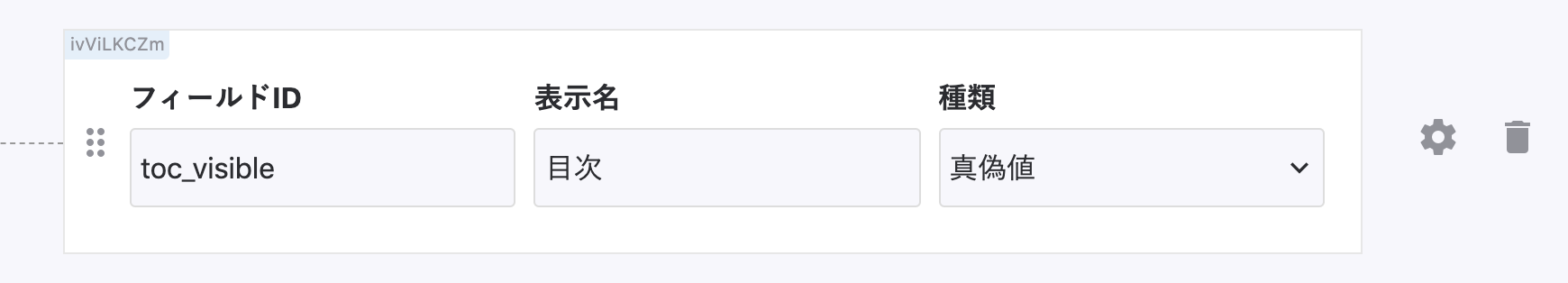 API設定 > APIスキーマから以下のようにBooleanフィールドを用意します。