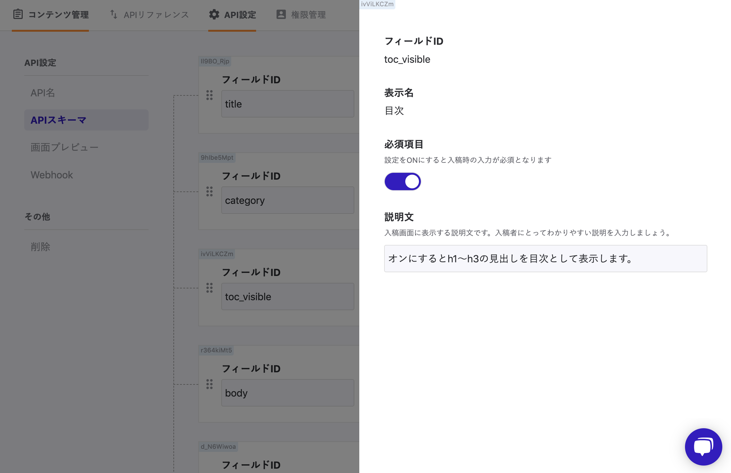 { text: '目次機能のオンオフ', id: 'h4AL9B4qAV6', name: 'h2' },