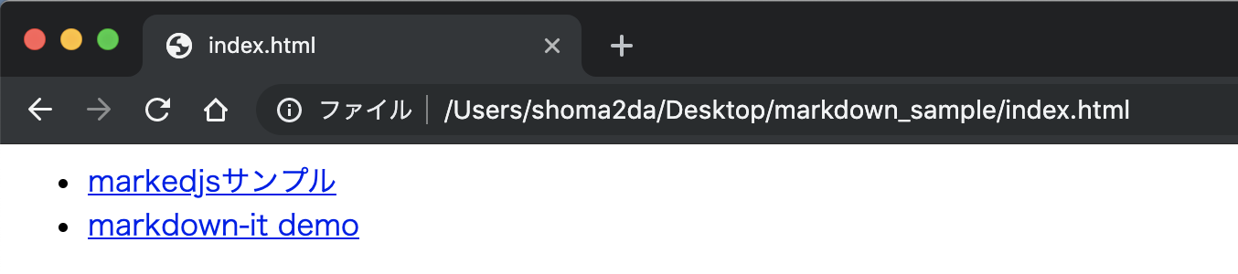それではコンテンツの用意ができたのでこれをブラウザで表示してみましょう。