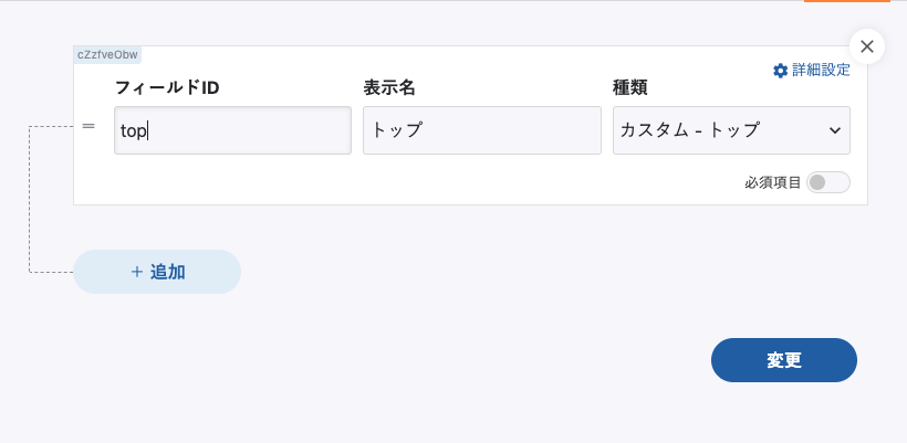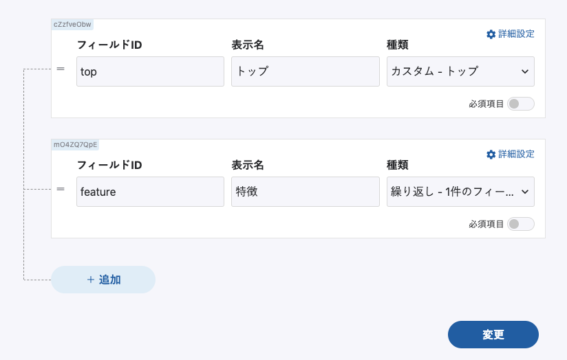 繰り返しフィールドはフィールドを追加をクリックすると、カスタムフィールドを追加できます。