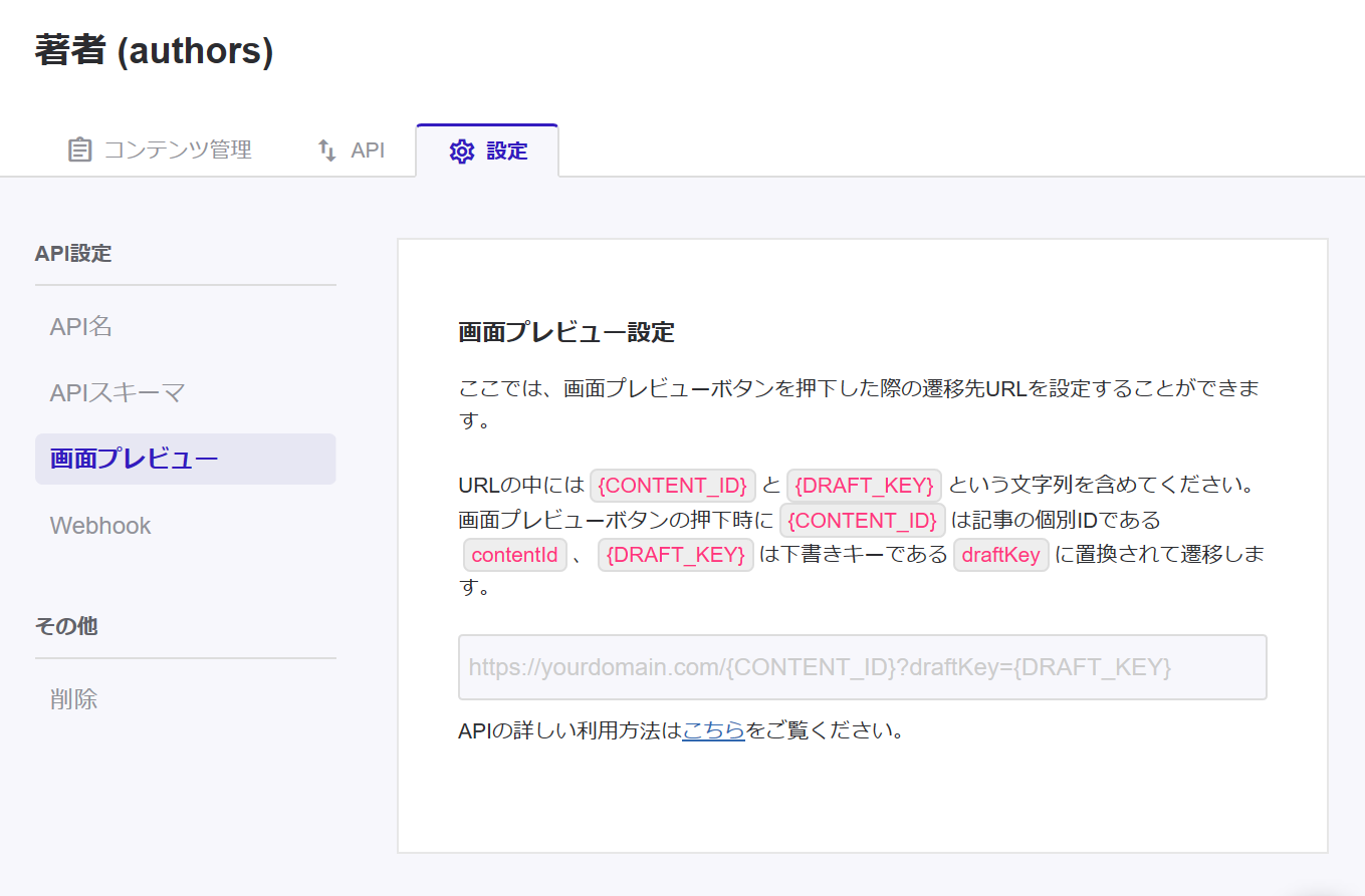 遷移の際には、コンテンツのcontentIdとdraftKeyは実際の値に置き換えられます。