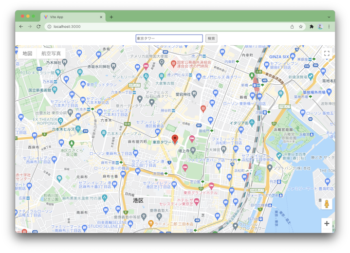 まずは地図ページの実装です。ここではVite + Reactのプロジェクトを新規に作成して進めていきます。