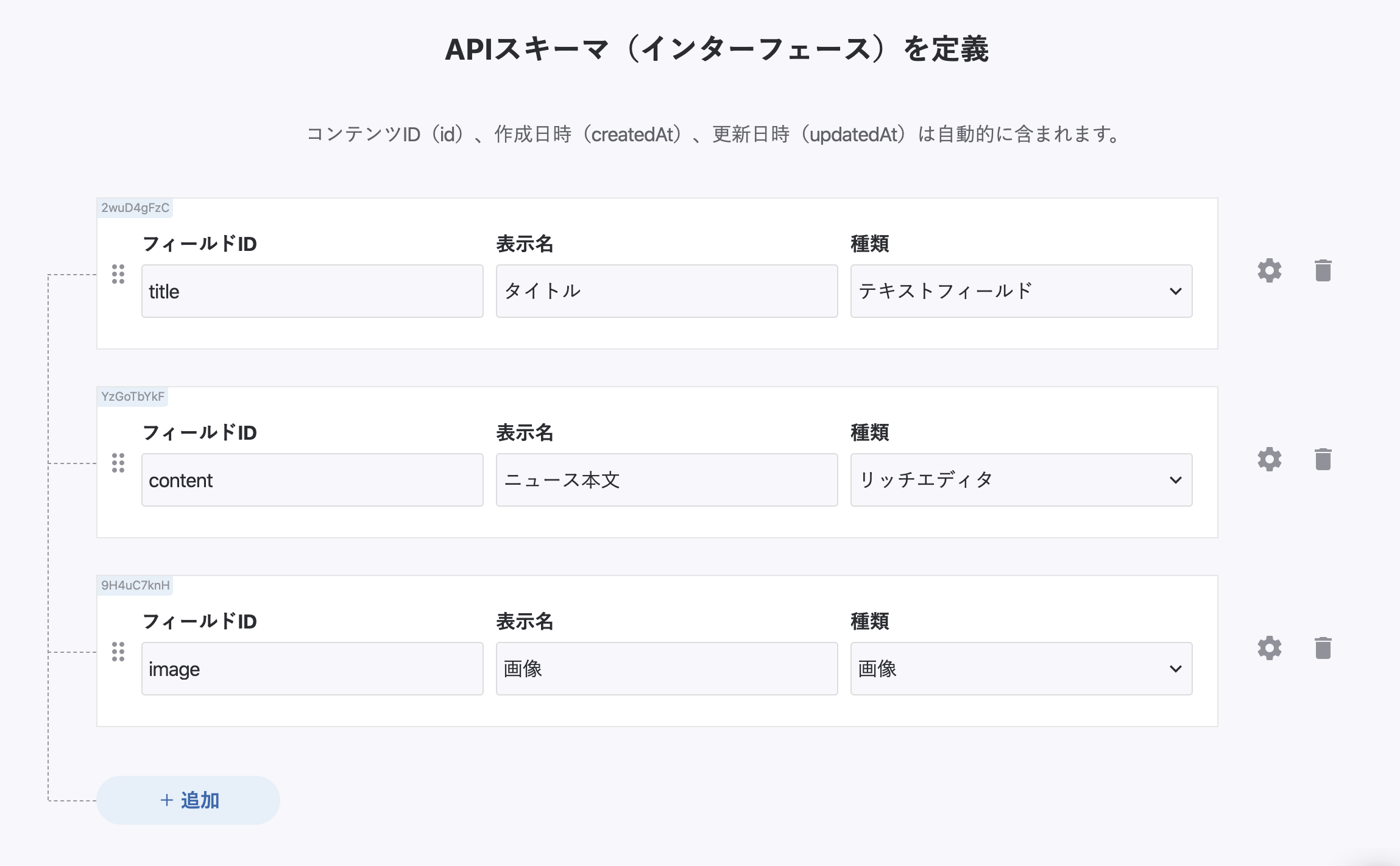 ※microCMSの使い方はmicroCMSのはじめ方などをご覧ください。