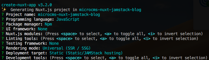 $ npx create-nuxt-app microcms-nuxt-jamstack-blog