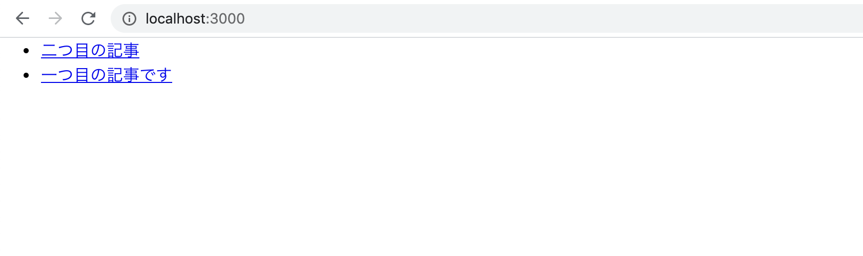 ここまで終えたところで、localhost:3000にアクセスすると記事一覧が表示されているはずです。