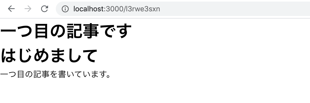 localhost:3000にアクセスし、記事リンクをクリックすると詳細ページを表示することができます。