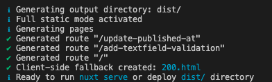 もう一度 npm run generate を行うと、各ページが生成されます。