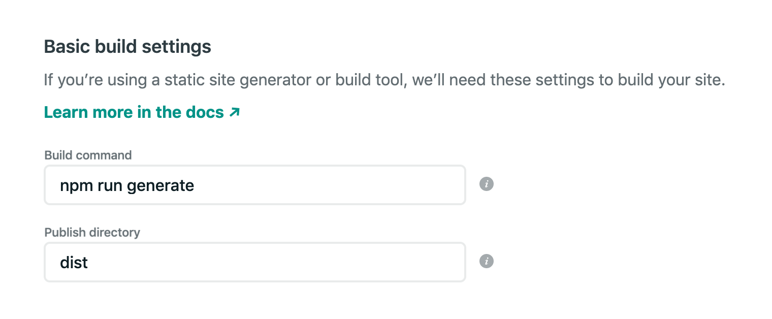今まではnpm run devで開発していましたが、これはいわゆる開発モードで、デプロイする際はビルドして静的ファイルの形で配置します(Jamstackなので)。
