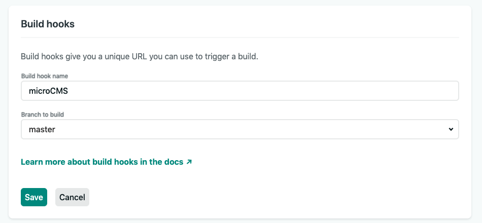 これをmicroCMS側のWebhook設定に入力し保存します。