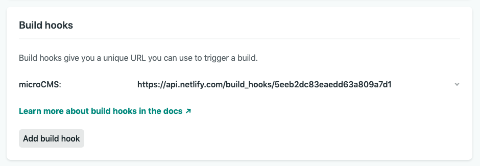 Netlify側のSettings > Build & deploy > Build hooksから設定可能です。