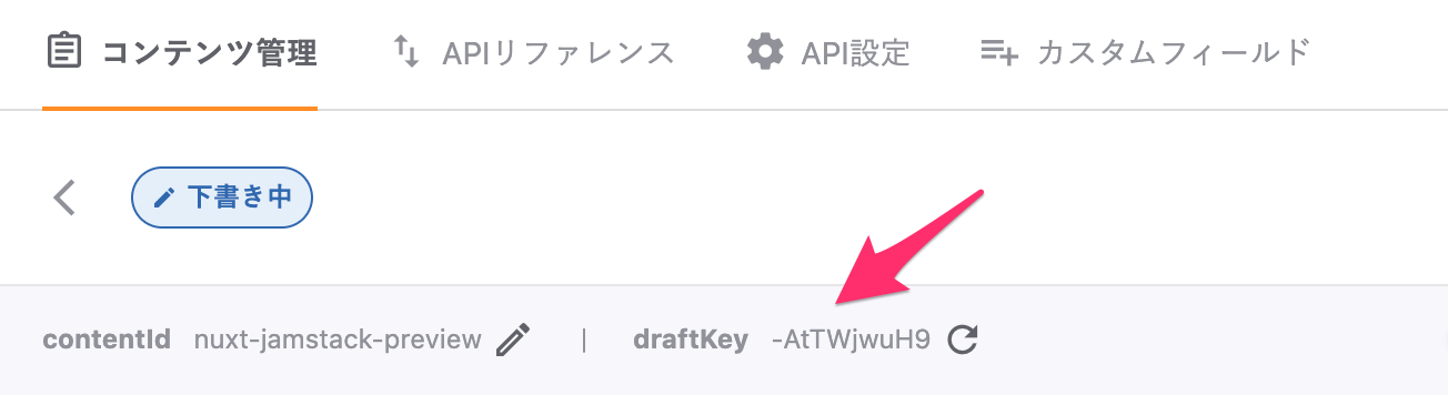 microCMSではコンテンツが「下書き中」ステータスの場合、draftKeyが発行されます。