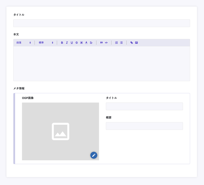 今回はメタ情報としてタイトル、概要、OGP画像の3つを用意しました。