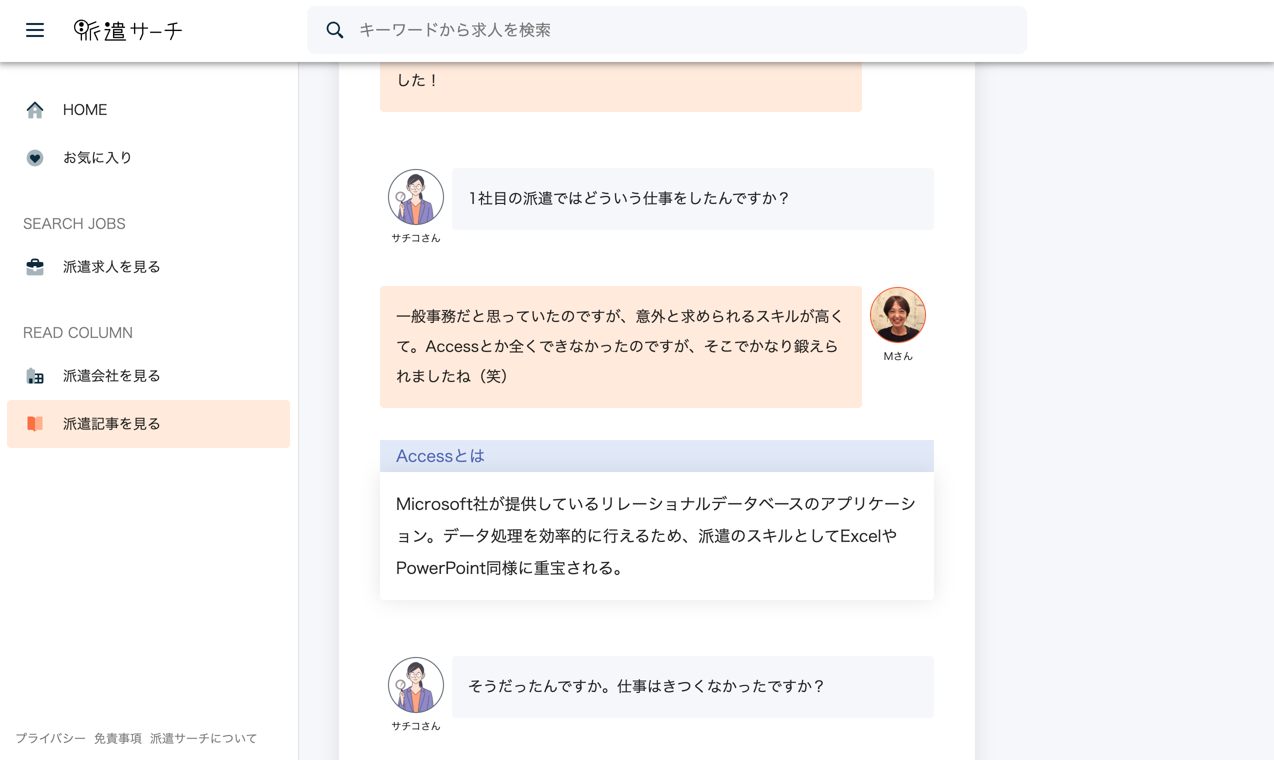 派遣サーチというメディアサービスでコンテンツの見た目、文章のチェックを担当をしています。