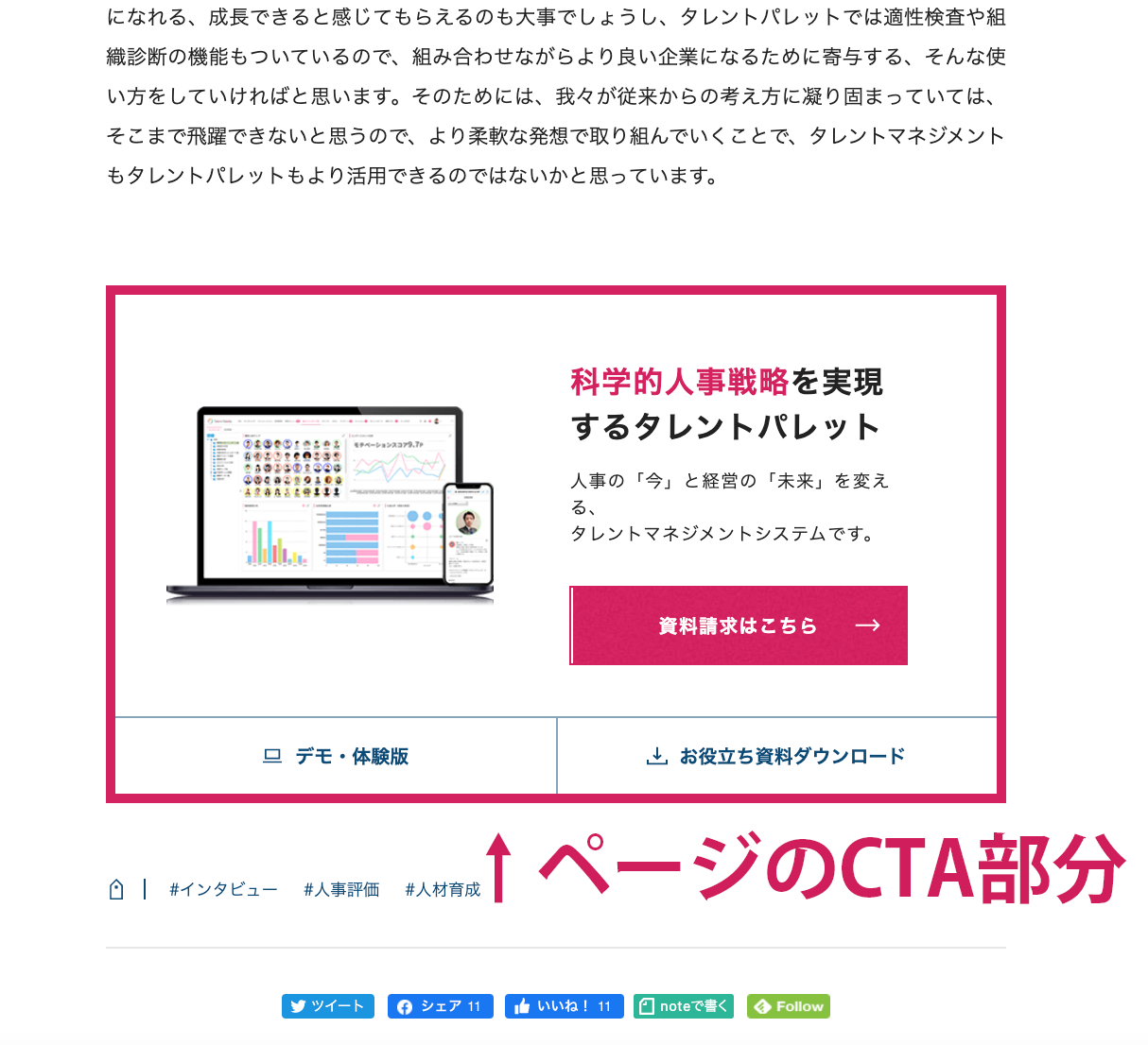 タレントマネジメントラボ」では、記事ページの運用だけでなく、記事の最後のCTA部分のテキストや画像・リンク先は全てmicroCMSの管理画面で記事ごとに変えられるようにしています