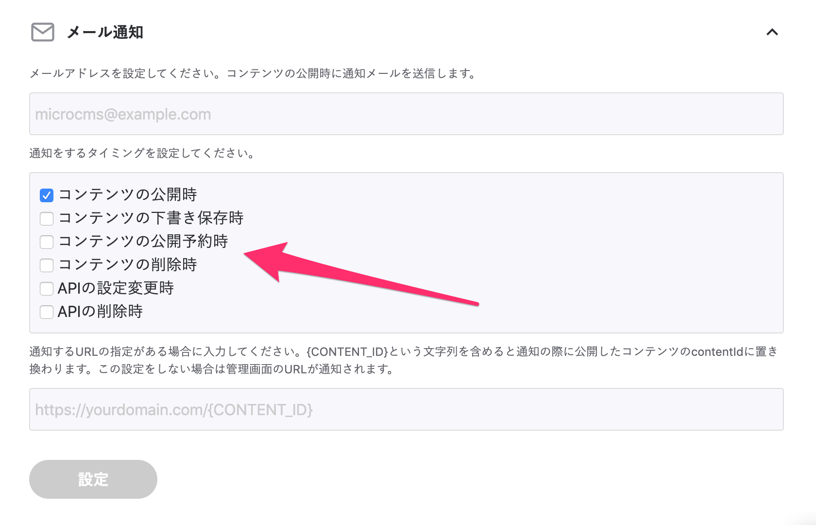 • コンテンツ公開予約時
